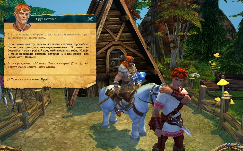 Несём её Йохану, получаем награду, и вновь обращаемся к нему с вопросом: нет ли работы? Поздравляю, теперь вы – сват. Или сваха. Ну, чего задумались? Бегите к Рыжей Хестре, уговаривать! После пары пробежек туда-сюда любящие сердца соединятся… Уф!