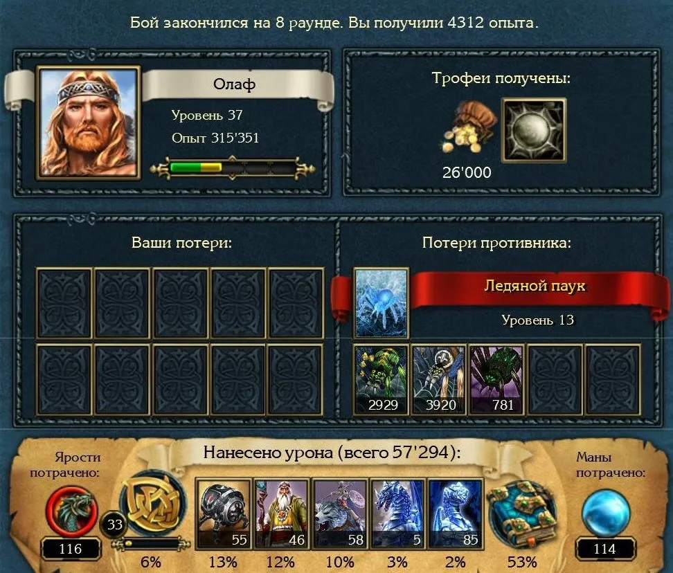 Доставил неприятностей Ледяной паук, применявший «Гейзер»; проблему решила максимальная защита от магии и разделение северных воительниц на два отряда. Впрочем, если вы получили «Звезду смерти» раньше боя с пауком, достаточно только ледяных драконов, они справятся.