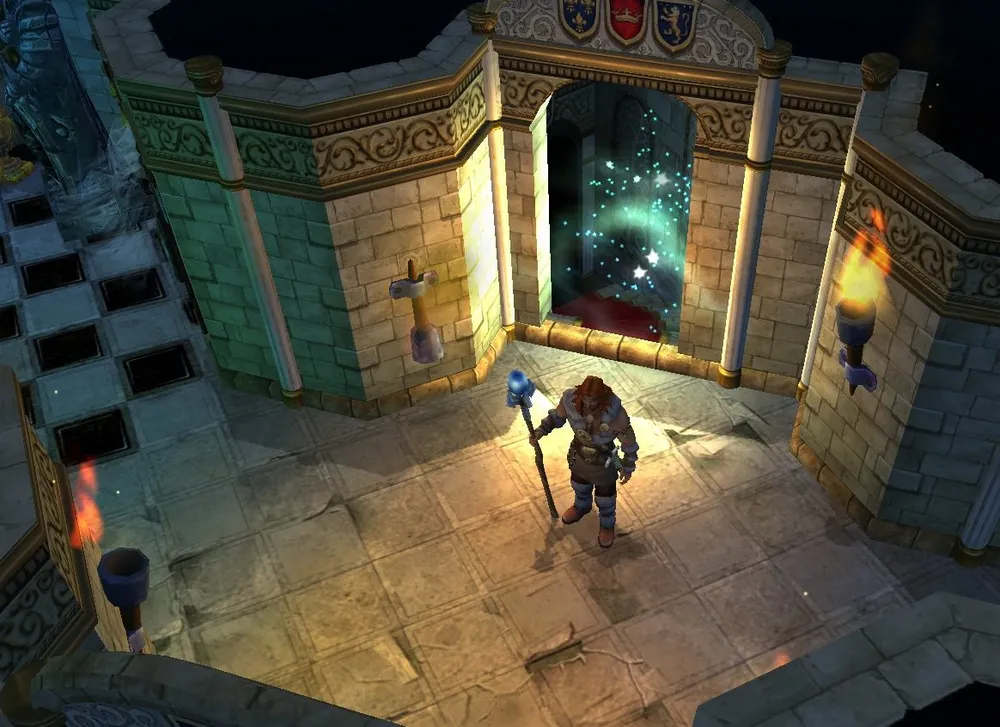 Вход в катакомбы расположен в старом полуразрушенном королевском замке. Попав внутрь, идите по левому коридору, пока не увидите факел, горящий сиреневым пламенем. Пустячок, а приятно!