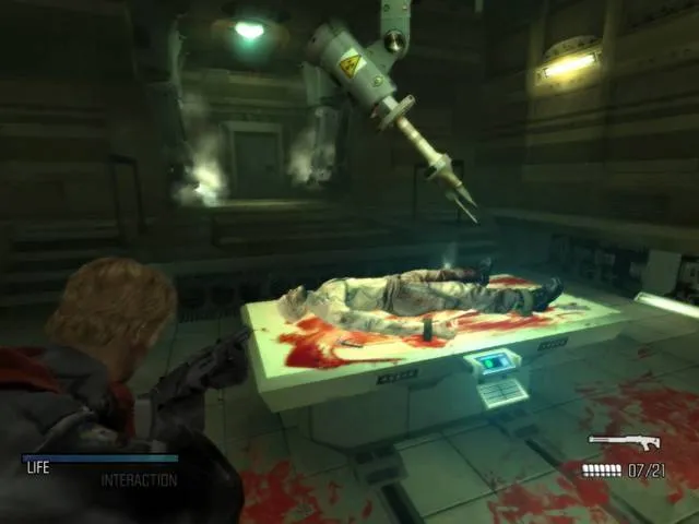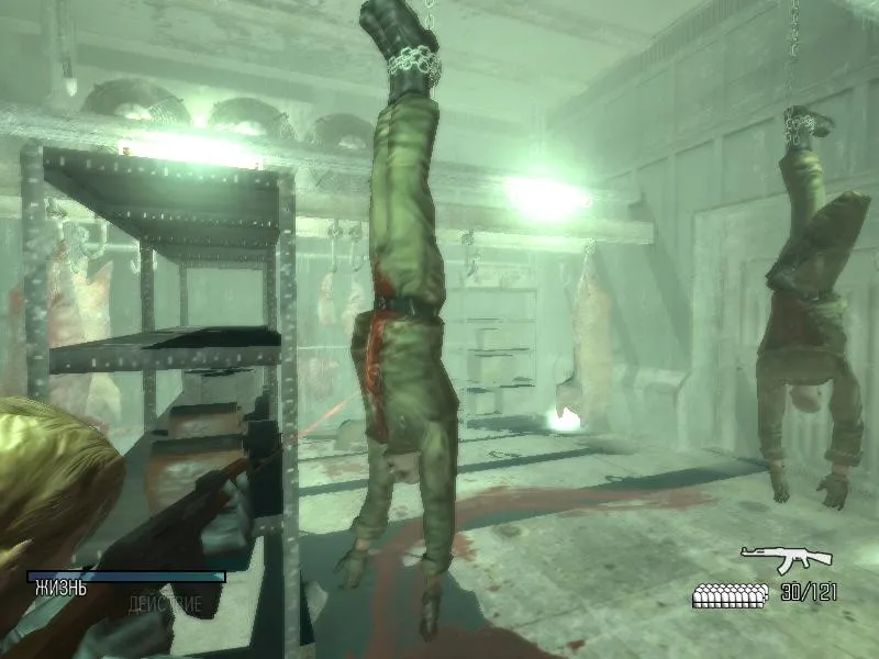 Честно признаюсь, мне не нравилась цветовая гамма обителя зла 4. Она была, какой то серой и не страшной. Но в данном проекте, все с этим отлично. Всегда темно, постоянно страшные доносящиеся неизвестно откуда звуки и только фонарик и оружие сможет вас защитить. Стоит отметить карту, а точнее ее отсутствие. Конечно в начале, это может раздражать, так как вы попали на корабль и не знаете, что где находится, а судно большое! И вот вы сами должны исследовать все коридоры и комнаты. И спустя какое то время вы поймете, что это как раз сделано для создания атмосферы. Вот, например должен я был идти на какой то склад, а я немного заблудившись, попал на нижнюю затопленную палубу. И вот была такая картина: Воды по колени и в воде плавают пара трупов. И вот ваш герой медленно пробирается вперед и вдруг на вас прыгает зомби. Я в тот момент аж подпрыгнул, уж точно я не ожидал такого. Таких моментов в игре полно, в принципе игра и пугает резкими выпрыгиваниями врагов и страшными звуками. Вот зашел я, в какую то лабораторию, из звуков только шум компьютеров и посередине комнаты труп на столе, над которым ставили эксперименты. И от этой гробовой тишины лично у меня побежали мурашки по коже. Единственная мысль была, чтобы побыстрей обыскать комнату и уйти из нее.