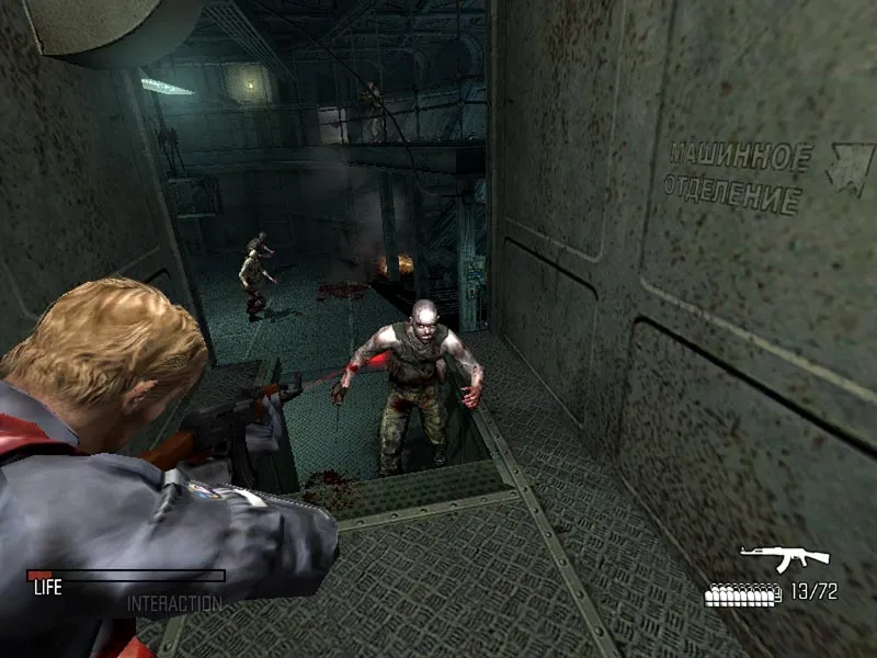 Ну и собственно мы должны продвигаться по сюжету, выполнять разные задания и попутно убивать всех неприятелей. Игру можно разделить на 2 части. Первая проходит на корабле, а вторая на буровой вышке. Лично мне больше всего нравится часть с кораблем. Во первых, так как Cold Fear это Survival horror, то тут действительно нужно выживать. С первых же моментов игры, мы видим, что судно попало в шторм и его постоянно качает. И в некоторых моментах и так же в начале, Тома просто может снести волна из океана. Иногда бывают вот такие сцены, когда идете вы по палубе и вдруг на вас нападет группа зомби. Вы только прицелились и вдруг корабль начал качаться, и вы понимаете, что летите за борт и быстро пытаетесь за что-нибудь ухватиться и не умереть. Порой такие моменты смотрятся весьма кинематографично и главное страшно.