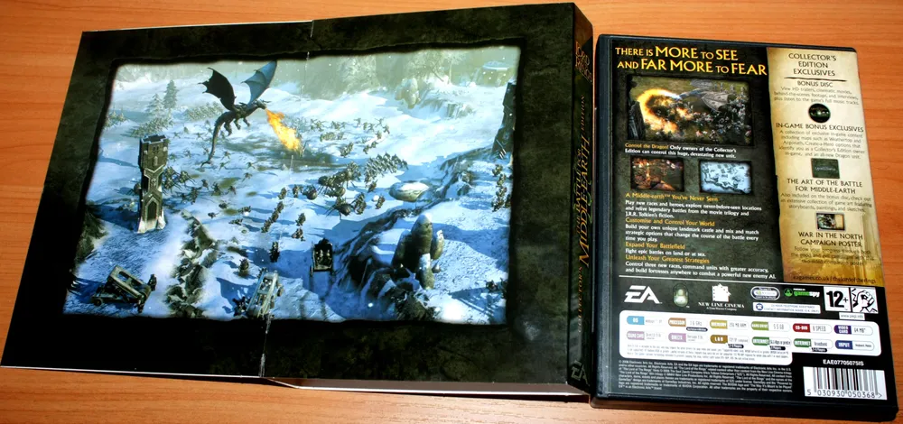 Обычно при словах «европейская коллекционка» геймеру представляется нечто красивое, монструозное и дорогущее, как World of Warcraft или, например, StarCraft 2. Но на самом деле, интересных изданий в основных европейских странах выходит не больше, чем у нас. Прекрасной иллюстрацией этому станет европейская коллекционка Lord of the Rings: Battle for Middle-Earth 2, которую СофтКлаб издал в нашей стране в 2006 году. Прежде чем переходить собственно к изданию, стоит сказать об интересной особенности российского релиза: обычный DVD-box был полностью на русском языке, в то время как коллекционка содержала только английскую версию. Интересное решение для любителей оригиналов, но делалось такое очень редко: навскидку вспомнились лишь Command and Conquer 3 от той же ЕА... Итак, Lord of the Rings: Battle for Middle-Earth 2 Collector's Edition: