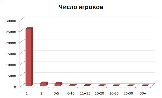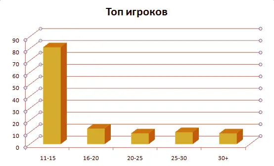 Что же было дальше? Дальше динамика стала пошустрей. Больше половины активных пользователей не стала задерживаться и ломанулась вверх. Таким макаром число пользователей с 3 по 5 уровень составило 1052 человека, что ненамного меньше всего 2-ого уровня. До 6-10 добралось уже меньше. Всего 314 пользователей. С 1о-ого по 15-ый мне удалось насчитать только 81 человека. Это те люди, которые лезут вверх активнее всех. Ведь они уже не новички, а овцевать всё ещё не умеют. Главный стимул пока что работает :) Негусто по сравнению с числом всех пользователей, с другой стороны все они создают контент уже более менее активно. Какой игровой ресурс может похвастаться такой базой авторов даже с учётом всех аутсорсеров?