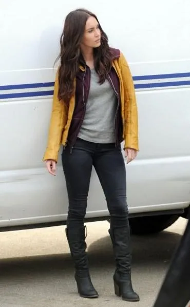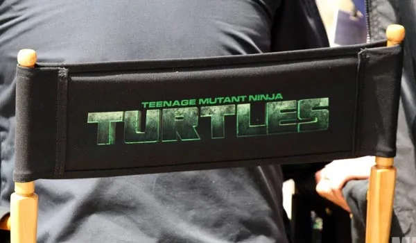 На съемочной площадке «Черепашки ниндзя». Эйприл, четверка, клан Фут и логотип фильма.