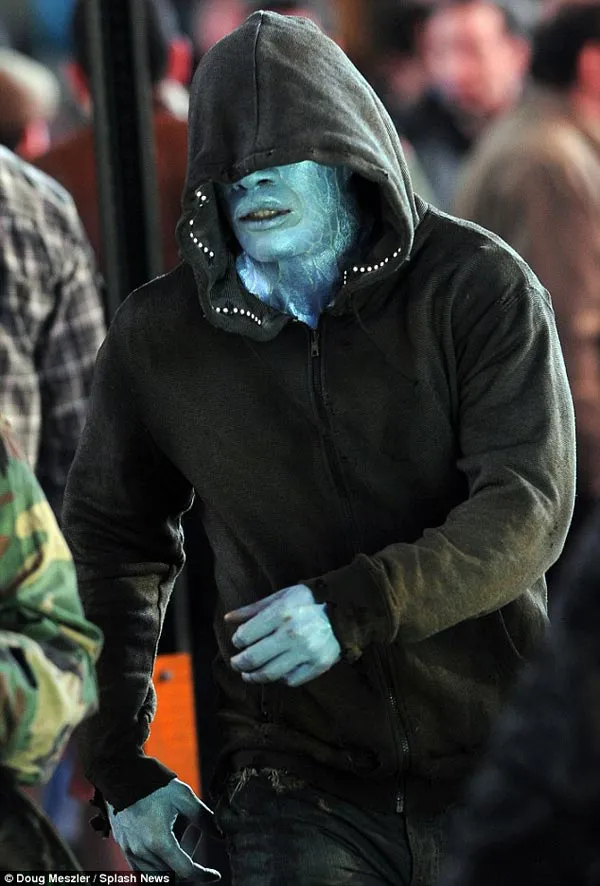 Съёмочный процесс второй части приключений вашего доброго соседа переместился на Таймс-сквер, где досужие зеваки тут уже углядели и зафиксировали нового Электро. Как собственно и заявлял ранее Джейми Фокс, от оригинального костюма электрика Максвелла Диллона пришлось отказаться. Кожа у злодея посинела, а сам он набрал лишние килограммы, и выглядит в разы внушительнее оригинала.