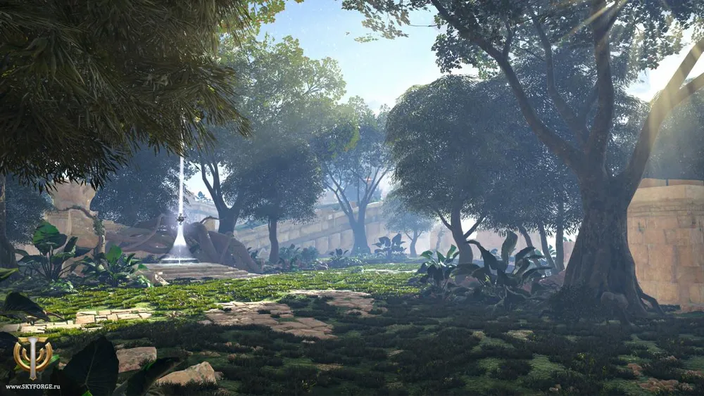 Но бог с ней, с фауной. Пейзажи-то какие вокруг, пейзажи! Звенящей синевой сияет небо. В вышине белеют отблески гигантского каркаса, опоясывающего Элион. Парят стаи птиц. Светит яркое солнце. Прямо перед вами – буйство зелени. И руины – то тут, то там. А если подойти на самый краешек локации, можно увидеть землю далеко-далеко внизу. Мы ведь висим в воздухе. Я не знаю, кто такой Исол, но место для раскопок он выбрал в крайней степени странное. Хотя и очень симпатичное. В общем, вам понравится.