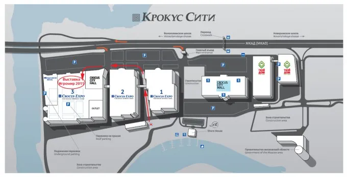 Проезд до станции метро «Мякинино». Выход к выставочным павильонам.