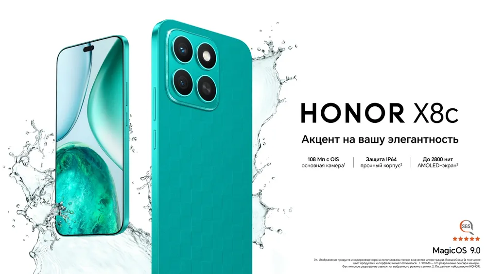 В российских магазинах электроники и на маркетплейсах начались продажи смартфонов HONOR X8c в стильном корпусе с защитой на 360° от влаги и падений, а также улучшенной основной камерой с оптической стабилизацией (OIS) и фронтальной камерой с подсветкой селфи.