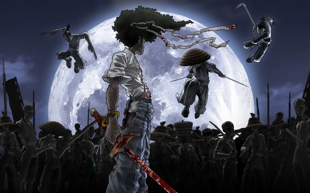 Позже, на Афро напали бандиты. Они отобрали повязку Второго и стали потешаться над уже облезлом черепом отца Афро. Пытаясь остановить бандитов, Афро ввязался в драку, где соответственно и получил тяжелейшие ранения. Ели живого Афро нашли мимо проходящие ученики Мастера Меча. Приютив малыша, Мастер Меча решил обучить его своему мастерству.