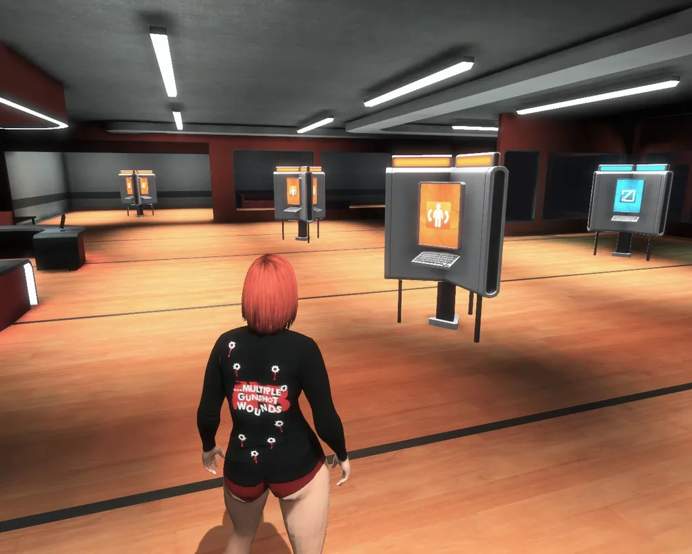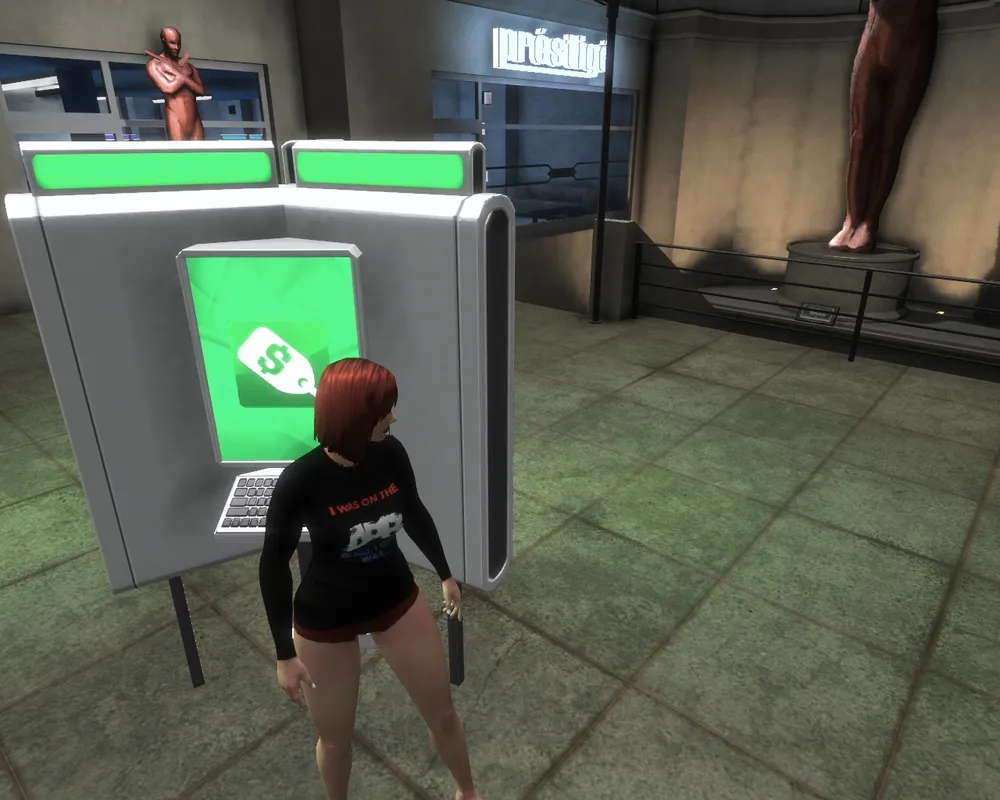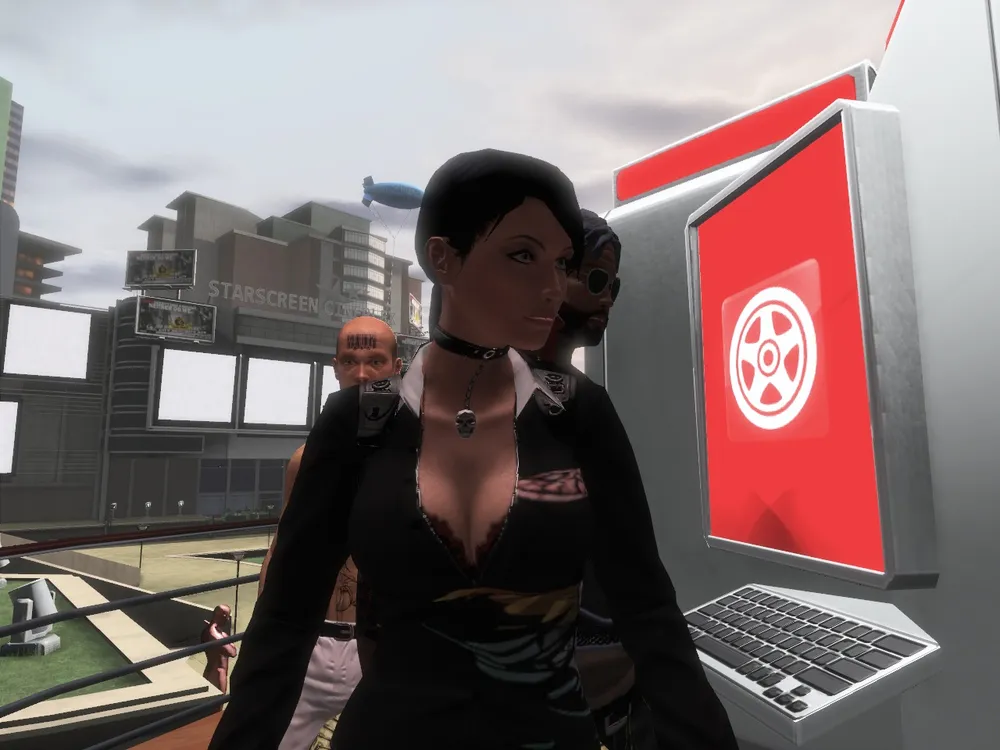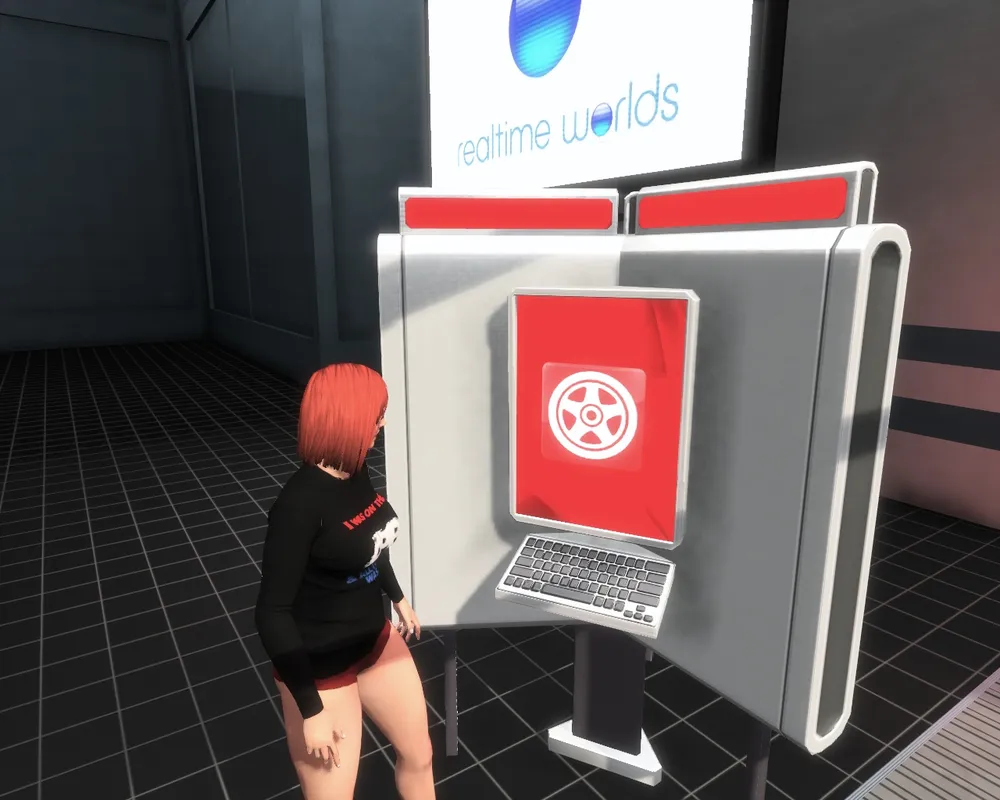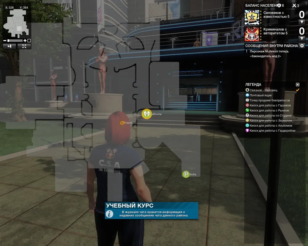 Поговорим немного об автоматах, рынки - зелёные, кустомизация одежды - фиолетовая, кустомизация машин - красная, кустомизация персонажа - жёлтая. Так же есть белые автоматы для создания\редактирования мелодий, голубые - для создания\редактирования картинок, почтовые ящики, да коробки с патронами, рядом с которыми можно изменить настройки своего персонажа, нажав клавишу инвентаря (I).