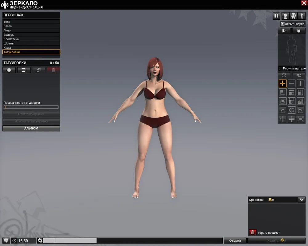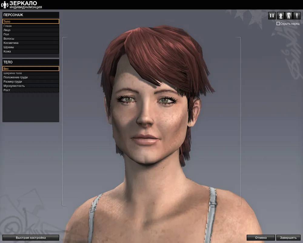 Более тонкие настройки внешности разделены на группы, например, что бы изменить нос, Вам надо покопаться в списке, находящимся в пункте Лицо, когда как, что бы изменить размер зрачков, надо зайти в пункт Глаза, который к пункту Лицо чудным образом отношения не имеет. В принципе, уже даже на этом этапе вы можете превратить вашего любимчика в совершенно уникальную зверюгу, надо лишь потратить немного свободного времени, изучая такие пункты, как оттенок кожи, выпуклость вен, форма зрачков и так далее.