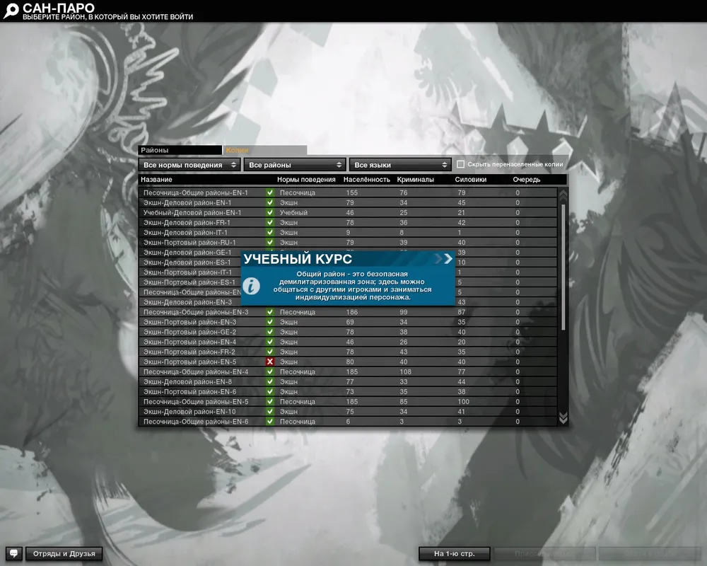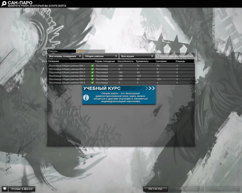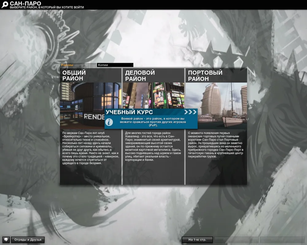 Далее нам обязательно стоит разобраться с выбором района. Мы можем просто кликнуть по одной из трёх картинок, что бы попасть в интересующий нас район, а можем заметить кнопочку "копии" над картинками и перейти к списку районов. В данный момент нас интересует Общий Район, так что смело выбираем его.