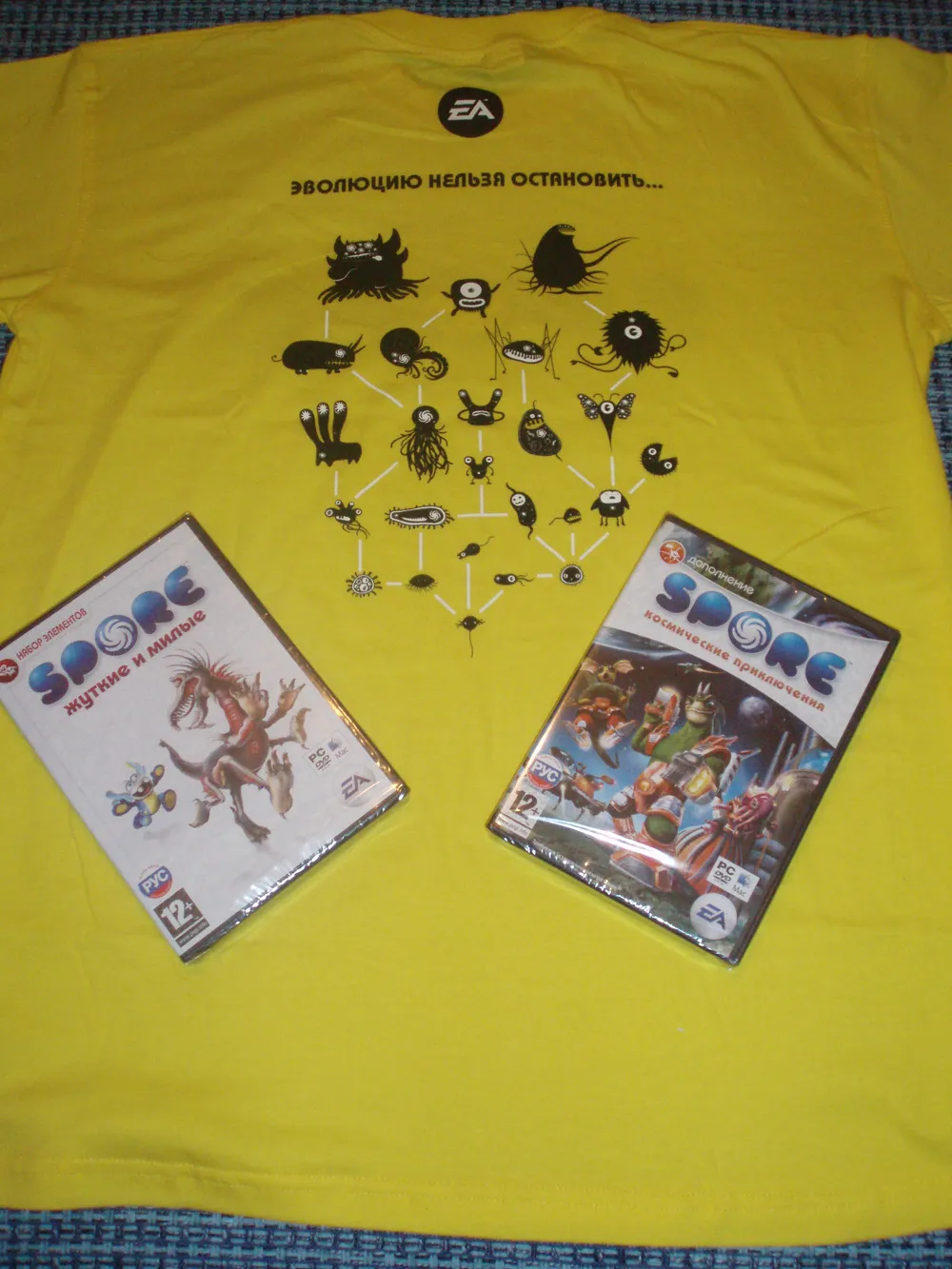 1. Футболка Spore замечательного качества и прикольного цвета, размер М, 100% Cotton :)