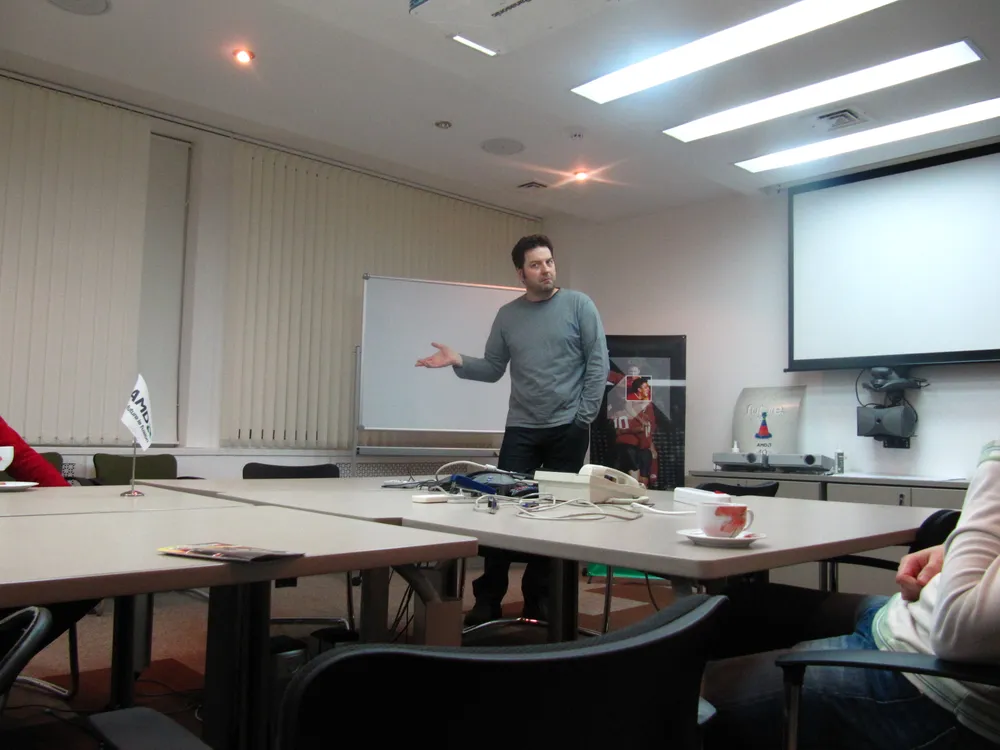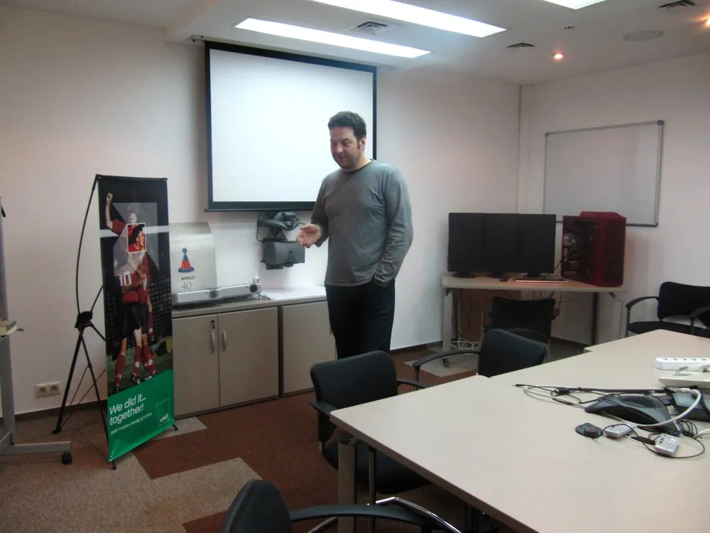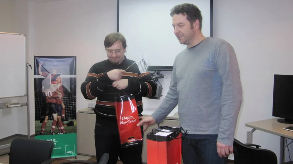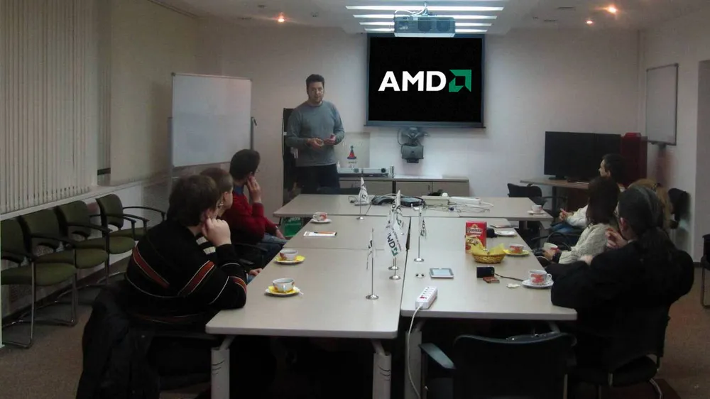 Перед тем, как вручить номинантам заслуженные подарки, представитель компании Кирилл Кочетков в теплой и дружественной обстановке провел небольшой брифинг по достижениям AMD.