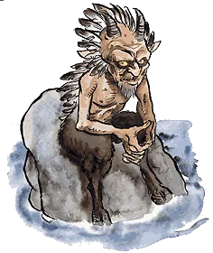 В шотландской мифологии - получеловек, полукозел. Приносит в дом счастье тому, у кого селится. Присматривает за скотом и хозяйством.