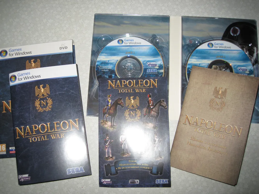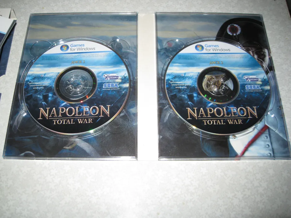 Впервые решил сделать что-то специально для gamer.ru - потрошу любимую игру под дулом фотоаппарата. Это "Napoleon: Total War - Императорское издание" в российском исполнении. Коробочка лакированная, с тиснением, внутри - руководство пользователя с описанием DLC "Элитные войска" на тыльной стороне, листовка с описанием DLC "Герои Наполеоновских войн", постер А3 и два DVD с игрой.