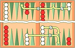 При игре в длинные нарды перемещение шашек происходит против часовой стрелки, как показано на рисунке.