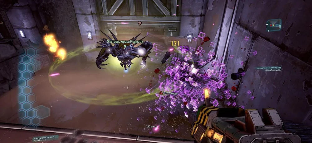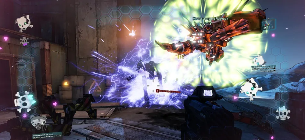 Постепенно Жестокус обзаводится целым ворохом полезных навыков, некоторые из которых, правда, пересекаются с умениями Гейдж. Например, если Мехромантка или Жестокус убьют кого-нибудь при помощи критического попадания (после изучения навыка “Электрический шторм”), то вокруг падшего противника образуется наэлектризованная область, поражающая разрядом всех близстоящих врагов. Забавный по своему названию навык “Баба с яйцами”, в свою очередь, позволяет Гайке и ее ржавому напарнику получать несколько меньше урона от вражеских атак, а также увеличивает силу ударов Жестокуса. Еще нужно отметить самый последний навык из древа “Лучший друг” – называется он “Не забывай делиться”. Нет, Жестокус не раздваивается по образу и подобию клеток, он просто обзаводится копией щита Мехромантки. Соответственно, если к моменту изучения навыка героиня уже успела нацепить на себя супер-пупер оранжевый щит, то и железяка (не путать с Железякой) получит точной такой же, тем самым существенно увеличивая свои шансы на выживание.