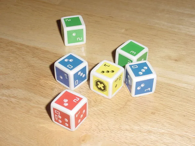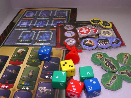 Мне очень понравились кубики, входящими в комплект игры – особенно механика их использования в игре. Кубики разных цветов делают каждое оружие уникальным. Зеленый кубик дает небольшое повреждение, но увеличивает дальность огня; синий кубик увеличивает повреждение, но не дает почти никакой дальности; желтый кубик увеличивает расход патронов, а красный – увеличивает все показатели, но значительно снижает точность. Безусловно, кубики придают игре злемент удачи и случайности – но без понимания того, какое оружие использовать в той или иной ситуации, морпехам не удастся победить.