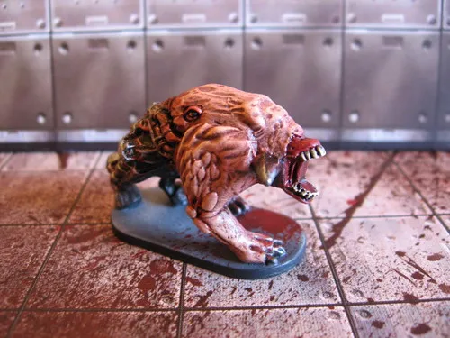 - Продвигаться вперед. Двигаться на расстояние до 4 клеток и проводить одну атаку – в любой момент до, во время или после окончания движения. Перед тем, как атаковать, морпех выбирает оружие (все морпехи начинают с пистолетом, гранатами и собственными кулаками), для которого у него есть хотя бы один значок патронов. Игрок бросает кубик, в соответствии с выбранным оружием (в игре есть 4 цвета, каждый со своей статистикой). Например, если игрок использует пулемет, то он должен бросить 2 зеленых и один красный кубик. После того, как игроки бросят кубики, они выполняют следующие три действия. Во-первых, они смотрят на выпавшие числа. Если большая сумма равна или больше чем дистанция до цели, атака считается успешной. Если же на любом из кубиков выпадает значок «Х», то считается, что игрок «промахнулся», вне зависимости от расстояния до цели. В первом случае, морпех считает количество пулевых отверстий выпавших на кубиках и делит это число на броню атакованного монстра. Результатом этого подсчета является величина урона, нанесенного монстру. Если он не убит (в этом случае его фигурка убирается с игрового поля), рядом с ним кладутся специальные значки, указывающие на количество полученных им ранений. Наконец, игрок-морпех проверяет, изображены ли на выпавших кубиках пули. Если да, то он должен «сбросить» один значок этого типа патронов.