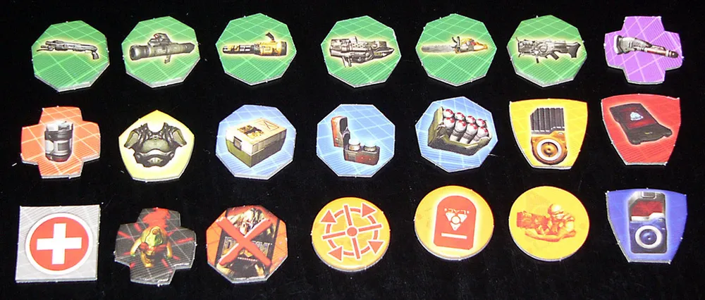 Значки в игре довольно широкие, двухсторонние и их очень удобно держать в руках. Они очень информативны и легко читаются на игровом поле – особенно теми, кто привык играть в «шутеры» от первого лица.