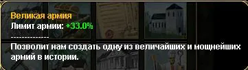 Национальные идеи становятся доступны при развитии технологии управления. Чем она выше, тем больше можно иметь нац. идей НО не больше 9(В войнах Наполеона 12). Каждая идея даёт определённые бонусы и все они делятся на 5 категорий: