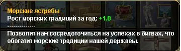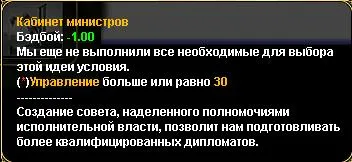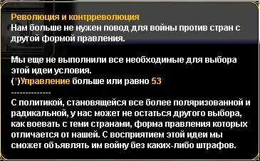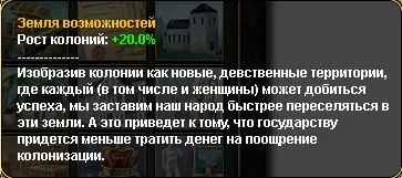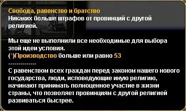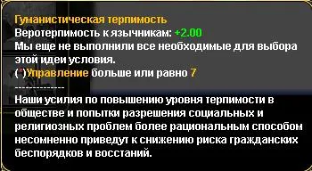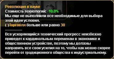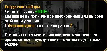 В игре имеются национальные идеи, которые дают игровой державе те или иные преимущества; по мере открытия новых государственных технологий появляется возможность выбрать одну из национальных идей.