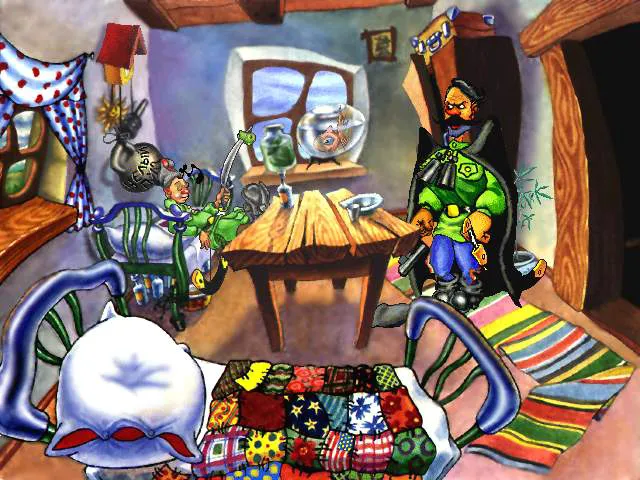 Хотя моменты просветления случались. Я могу вспомнить и оригинальный арт-хаус в лице проекта "Полная труба", и неплохие - хотя бы потому, что уже не набившие оскомину интерактивные сборники анекдотов - квесты по "Двеннадцати стульям" и Шерлоку Холмсу. Были и ещё мультяшные квесты, попытавшиеся повторить рецепт "Дачи кота Леопольда" - по пластилиновому шедевру "Падал прошлогодний снег" и по "Новым Бременским музыкантам" (пусть мультфильм и паршив, но игра благодаря своей непосредственности была как глоток свежего воздуха).