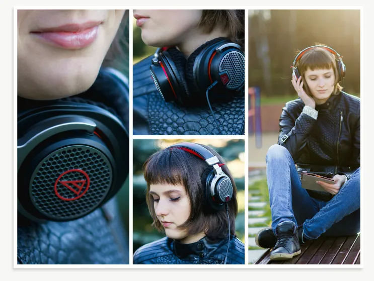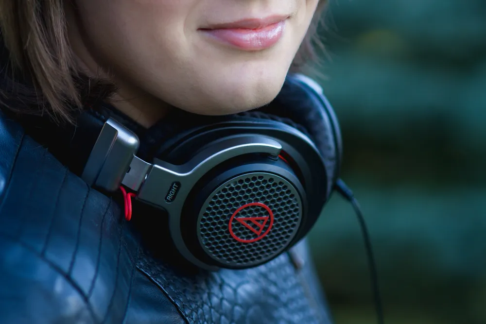 Открытый тип: в них не создаётся «изолированная» камера для динамиков. Прорези, драпировка и щели обеспечивают внутреннему объёму наушника «связь» с внешним миром, тем самым уменьшая эффект воздушной подушки (способен мешать правильному движению мембраны) и отводя часть звуковых волн за пределы корпуса (минимизация отражений).
