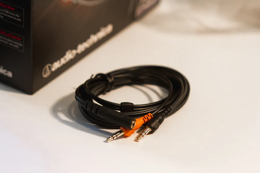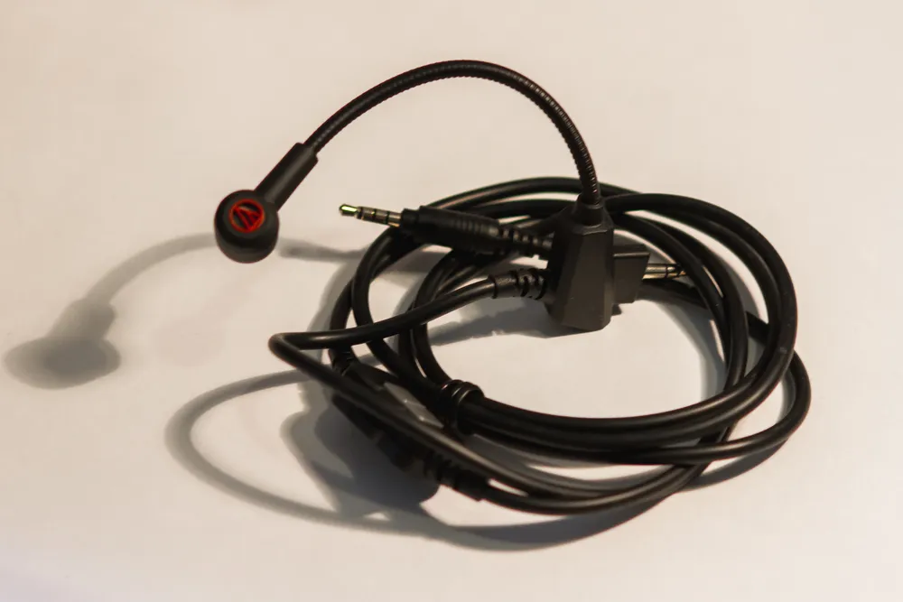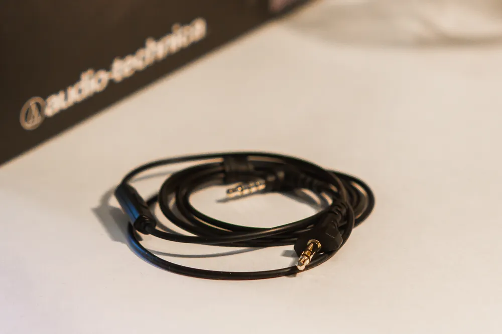 Вот как выглядит полный комплект поставки (инструкция тоже прилагается). Как видно на фотографии, кабель у ATH-PG1 съемный, в комплект входят 3 шнура. Один из них с микрофоном предназначен для смартфонов и игр (на гибкой ножке).