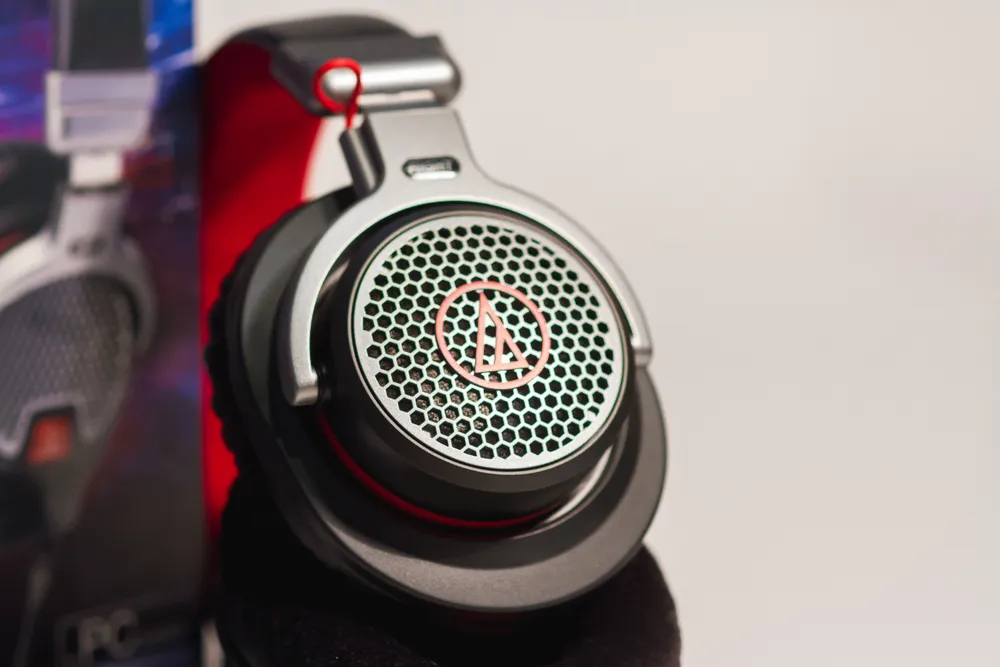 Первое, что бросается в глаза, - это внешняя сторона чашки, покрытая сеткой. Она обеспечивает более расширенную звуковую сцену, создавая близкое к натуральному звучание (у ATH-PG1 сбалансированный и чистый звук, хорошая шумоизоляция). Чашки по-прежнему большие, добротные, с мощными динамиками. Микрофон, как и предыдущей модели, расположен на левой стороне и имеет гибкую основу.
