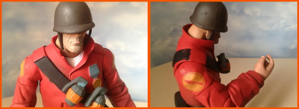 Глаза свои солдат предпочитает прятать под своей каской или какой-нибудь иной шапкой, что придает ему действительно брутальный вид. На лице фигурке глаза-таки увидеть можно, причем сделаны они даже качественней, чем у пулеметчика. Лицо тоже не отстает: вздернутая нижняя губа, щетина – все характерные признаки на месте.