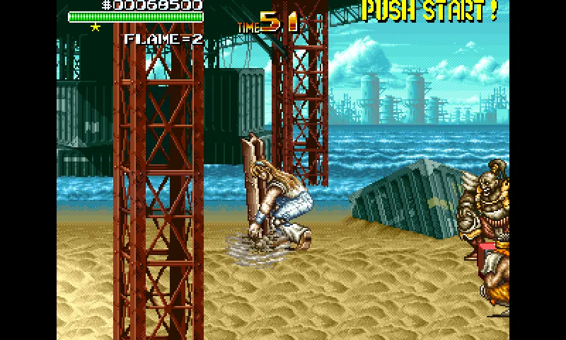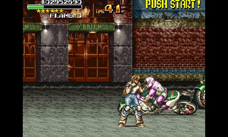 По жанру эта игра, как и описанный ранее [B]Cadillacs & Dinosaurs[/B] представляет собой двухмерный, или как их иногда ещё выделяют 2,5D beat'em up. Да, нас снова ждут толпы врагов, выбегающие со всех сторон и стремящиеся нас убить. Мы же можем противопоставить им только силу наших кончностей, и, иногда подобранное где-то на уровне, оружие. Как обычно, в конце уровня нас ждёт особо опасный босс, а где-нибудь по ходу уровня мы повстречаем кого-то, кого можно условно назвать минибоссом - обычно это большой толстый мужик, чуть мощнее рядовых противников. Остановимся на том, что максимальное количество игроков всё-таки двое, хотя есть видео где игру проходят втроём.