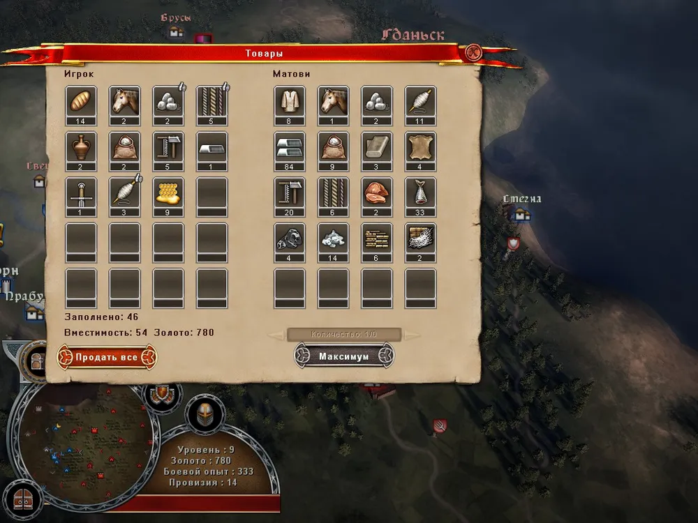 Экономика в игре достаточно простая. Деньги получаются как налоги со своих замков и при продаже трофеев, собранных после победы над врагами. Еще можно взять откуп от слабого отряда, который с вами драться не хочет, но это не имеет смысла – трофеев будет все равно больше, а легкий опыт упускать жалко. Тратить золото можно на покупку новых отрядов, пополнение гарнизона замков, улучшение бойцов и откуп от тех, кого вы побить не можете. Впрочем, от последних можно убежать, но при побеге вы теряете часть войск. Теоретически, можно еще торговать, покупая товары там, где они дешевы, и продавая подороже, но практически смысла в этом нет – трофеев много, стоят они дорого и довольно скоро золота у вас будет намного больше, чем вы можете потратить.