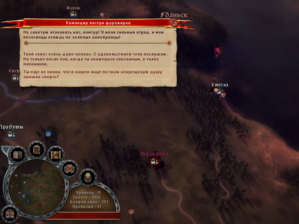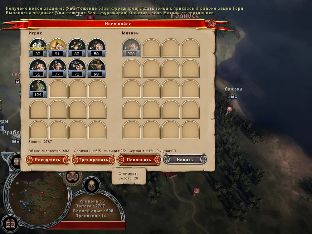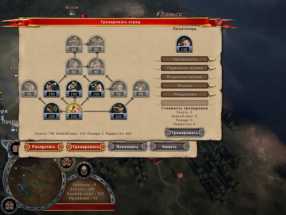 Да, войска вы покупаете, пополняете и обучаете, все как положено. Все это можно проделать в любом дружественном населенном пункте за золото. Для обучения требуется еще боевой опыт и, возможно, лошади. Для каждой фракции варианты развития свои, так что из польских ополченцев тевтонских рыцарей сделать не выйдет. Ваш герой в игре представлен в двух видах – как сам герой, получающий опыт и развивающийся, и как отряд героя, который можно улучшать на общих основаниях. К сожалению, боевой опыт отрядов – общий, а значит можно получать его одними бойцами, а улучшать других.