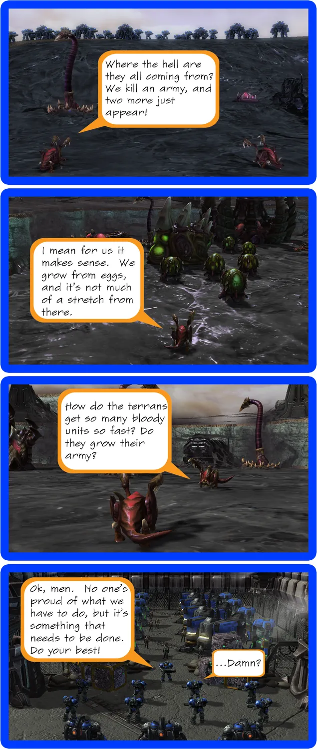 На сайте картостроителей sc2mapster.com проводится конкурс на лучший комикс на тематику Starcraft 2. Конкурс заканчивается 7 марта, ниже приведены работы выставленные на конкурс, наслаждайтесь.