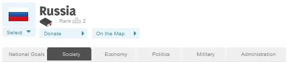 Можно посмотреть активные войны, в которых участвует страна, активные востания на территории страны, союзников страны и средний уровень силы по стране.