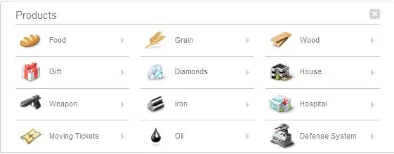 Здесь можно купить товары. Ресурсы могут купить только организации и фирмы; госпитали и защитные системы - только страны, а все остальное могут купить организации и простые жители страны.