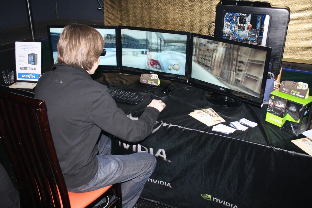Так же была комната с... О Боже! С компьютерами, на которых запущенна Mafia ll. Но это не все, точней все это в 3D! Nvidia как всегда нас радует. Поиграть не удалось, очередь и время, которое каждый играет, лишили меня всякой надежды((