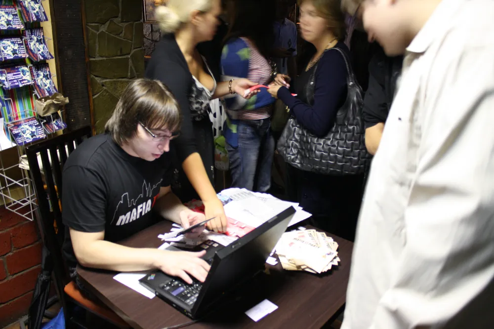 Ведущий не растерялся и предложил преступить к конкурсу. По конкурсу: очень интересно, призы очень хорошие, все вопросы на тему Mafia. Были легкие вопросы, были и сложные.