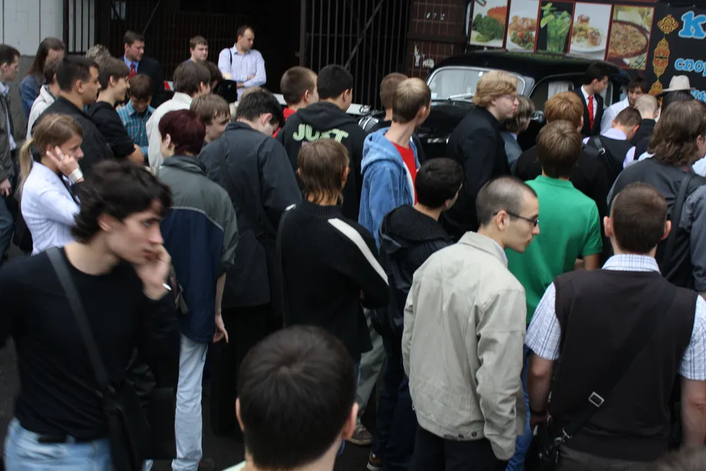 Спустя почти часа тряски в метро, передо мной открывается вид здания, в котором все должно проходить. Подойдя ближе я увидел... Очередь Толпу фанатов Mafia, тусующихся возле входа в Persona Grata. А ведь я опоздал!