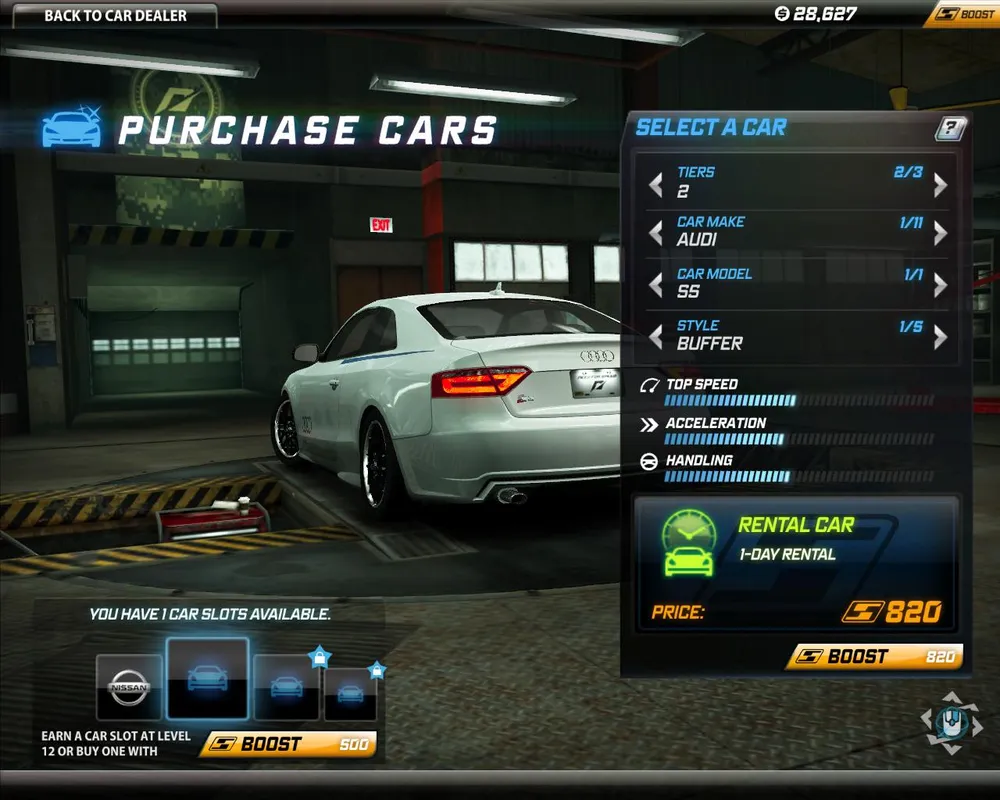 Тут мне понравилось одно очень интересное нововведение: за игровую валюту (Boost) можно приобрести доступную, уже прокачанную машину, на 24 часа.