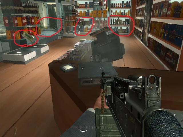 8.Постреляв по кассе мы видим только доллары,как ни странно а рублей нет как нет!