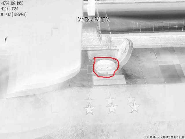 Красным обозначено где стою я, а синим место куда направлена ракета.Вот как это выглядело когда ракета улетело в воду: