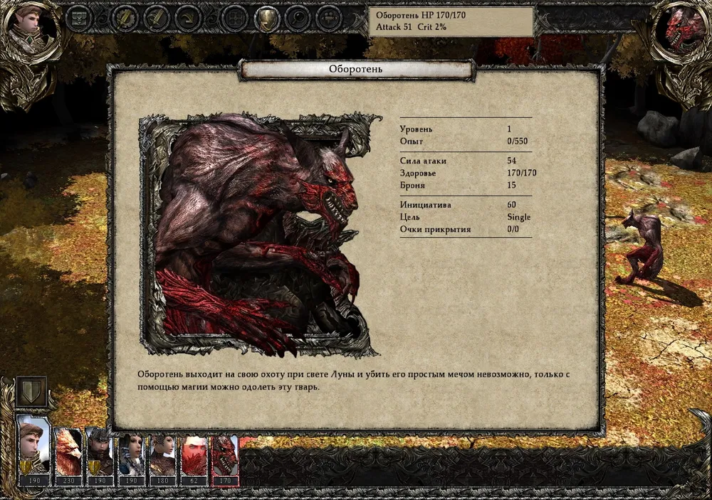 Вервольф (оборотень) - один из самых слабых юнитов в линейке нейтралов, однако его иммунитет к обычным, немагическим атакам может доставить множество неприятностей даже самым мощным воинам, если у них в компании нет чародея или волшебного оружия. Чаще всего вервольфы встречаются на землях нежити или возглавляют стаи обычных волков.