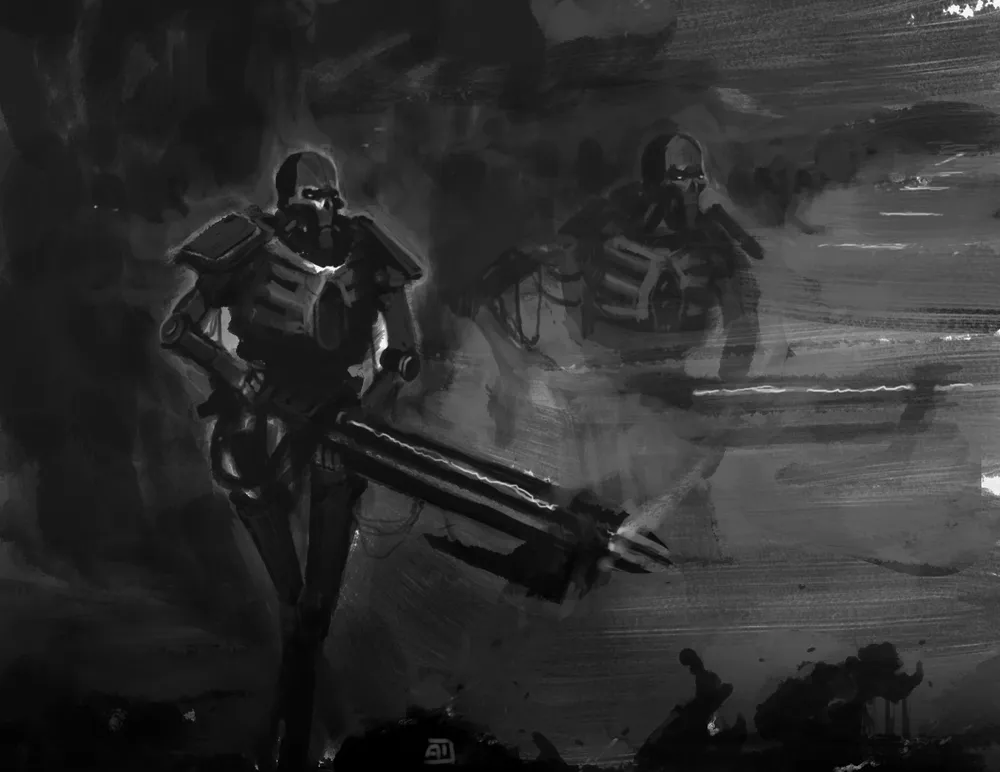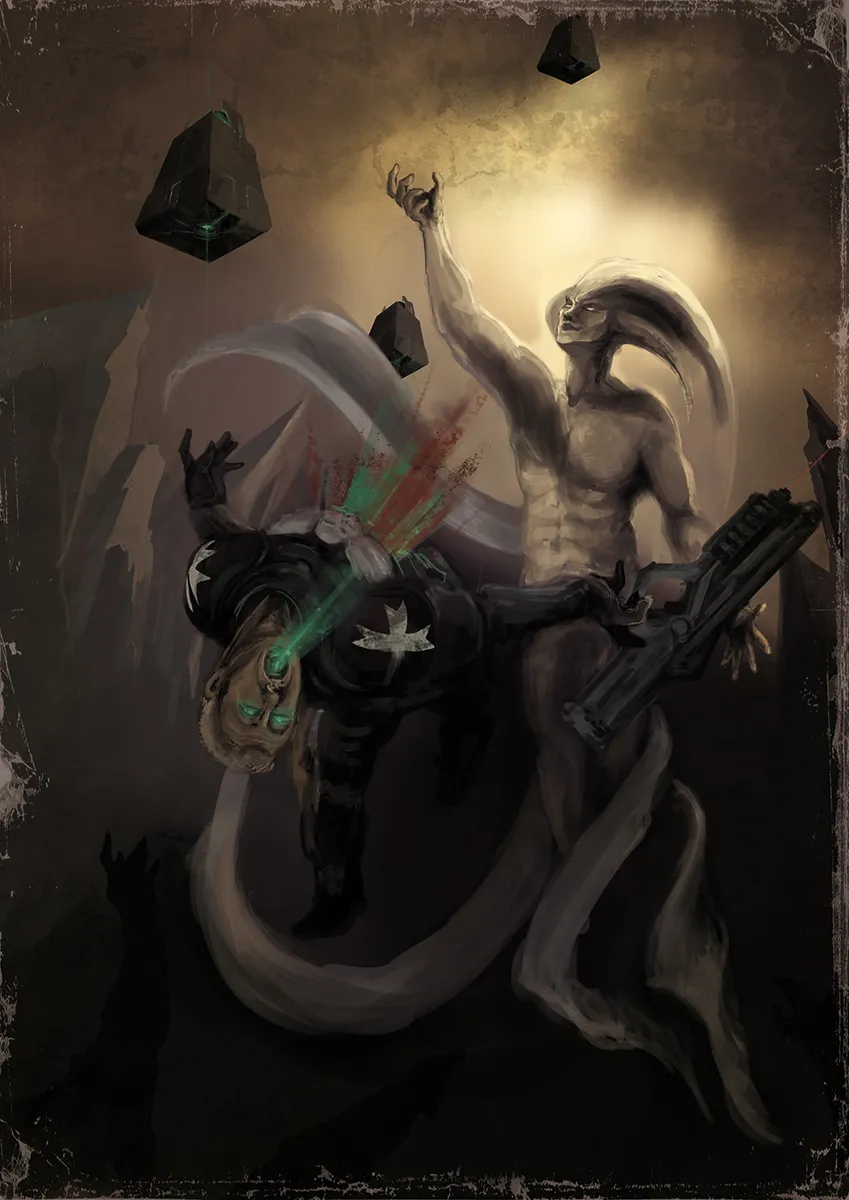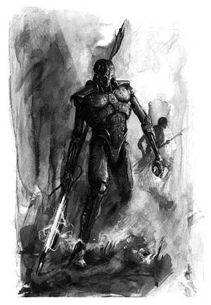 А вот эти создания – наглядный пример того, что некроны не являются просто безмозглыми машинами для убийства. Они развиваются и подстраиваются под ситуацию. Изгои никогда не принадлежали к расе некронтир – их создали уже после пробуждения некронов. Создали из людей, обладающих одним особенным талантом… Из неприкасаемых. Изгои предназначаются для борьбы с вражескими псиониками, и обладают, помимо опустошающей ауры неприкасаемого, ещё и аурой страха, вселяющей панический ужас в умы несчастных, оказавшихся неподалёку. Вооружены они так называемыми «боевыми косами» - посохами с лезвиями из живого металла и встроенными гауссовыми бластерами. Изгои – элита элит, и в рукопашной способны поспорить с сильнейшими бойцами иных рас.