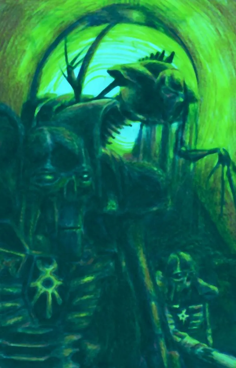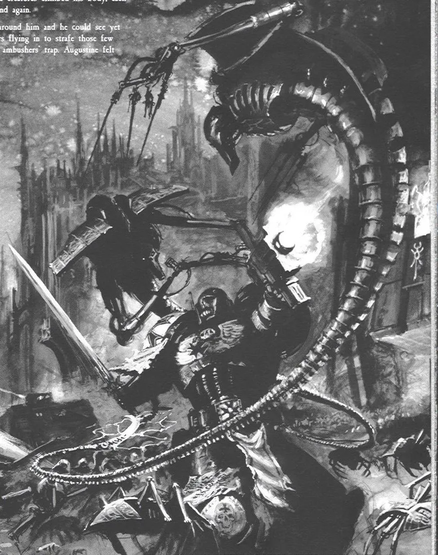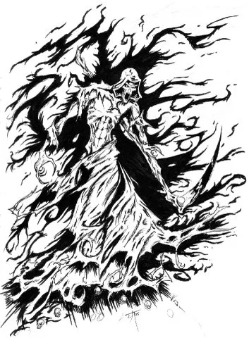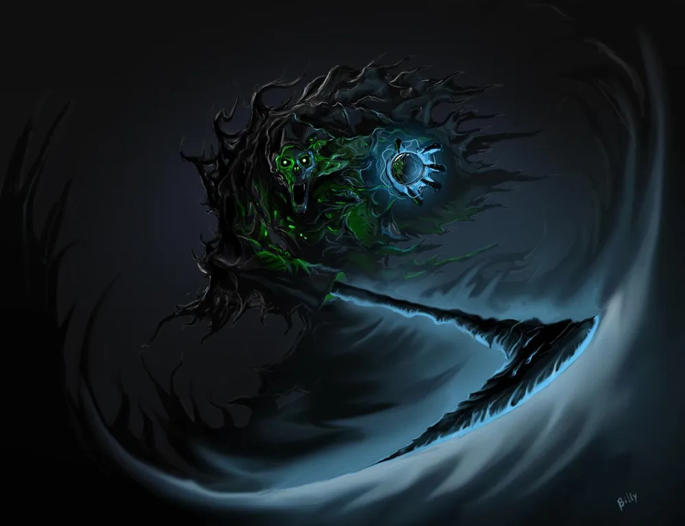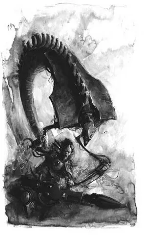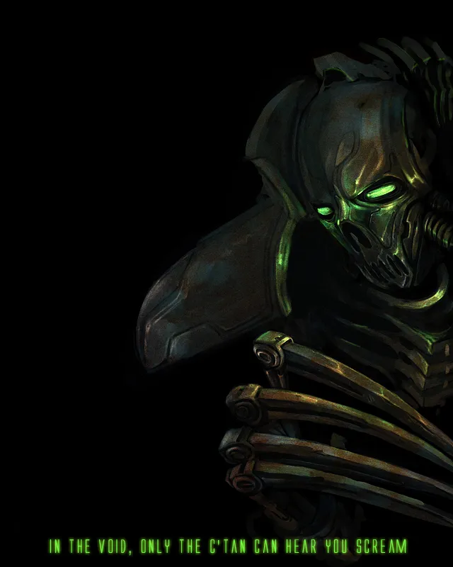 Всего живыми и на свободе остались только двое К’Тан, и один из них – Несущий Ночь. Этот К’Тан считался одним из смертоноснейших Звёздных Богов – даже имя он получил за свою способность сожрать за один присест целую звезду и не подавиться. Ужас перед ним был столь велик, что отпечатался в информационном поле галактики. Многие недоумевают, почему Несущий Ночь так похож на то, как люди себе представляют Смерть – дымная чёрная мантия, чудовищная коса, жуткие черты… Дело в том, что не Несущий Ночь похож на Смерть, а она – на него. Память об этом зловещем К’Тан сохранилась и в коллективном сознании человечества, и люди, сами того не подозревая, наделили Смерть вполне узнаваемым обликом. И не зря, в общем-то – Несущий Ночь как никто иной походит на Смерть воплощённую, вырывая у своих врагов души, насылая кошмарные видения бедствий и гибели и скашивая своей жуткой косой целые армии, как молодую траву.