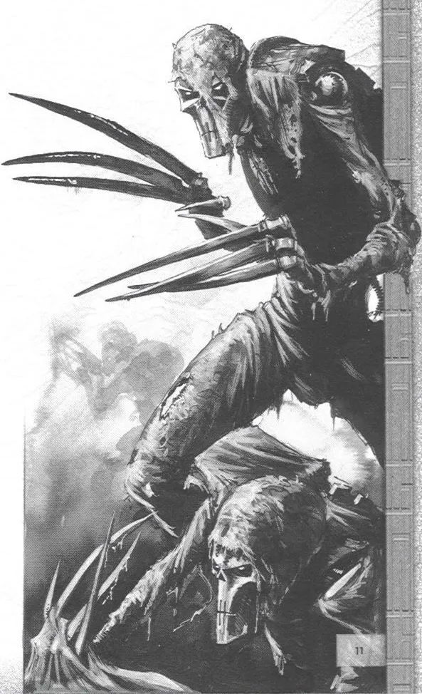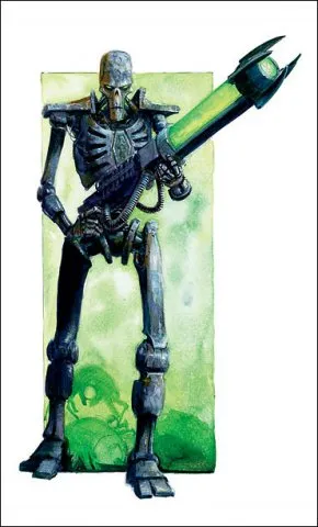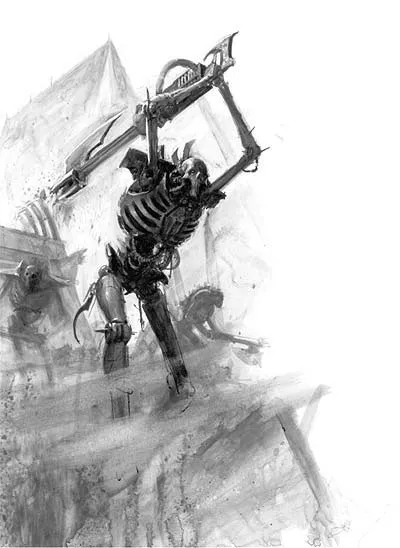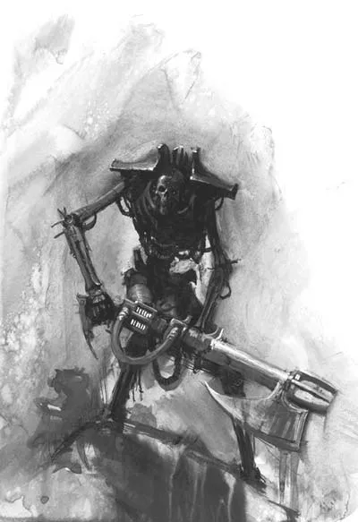 Внешность некронов словно бы создана для того, чтобы вселять страх в сердца человекоподобных существ, напоминая о смерти и о том, что будет после неё. Но есть некроны, внешность которых вселяет не просто страх, а панический ужас. Это свежеватели. Сгорбленные фигуры, пальцы которых представляют собой бритвенной остроты когти, а стальные тела скрыты под жуткими плащами из содранной кожи их жертв. В отличие от остальных некронов, свежеватели предпочитают ближний бой и двигаются весьма быстро. Тактика у них простая – подбежать и парой ударов своих чудовищных когтей срезать с жертвы всю кожу. Если свежеватель уже подобрался на дистанцию удара, выжить становится КРАЙНЕ проблематично даже для сильнейших рукопашников. А после боя эти создания собирают срезанную кожу, чтобы украсить себя новыми внушающими ужас трофеями.