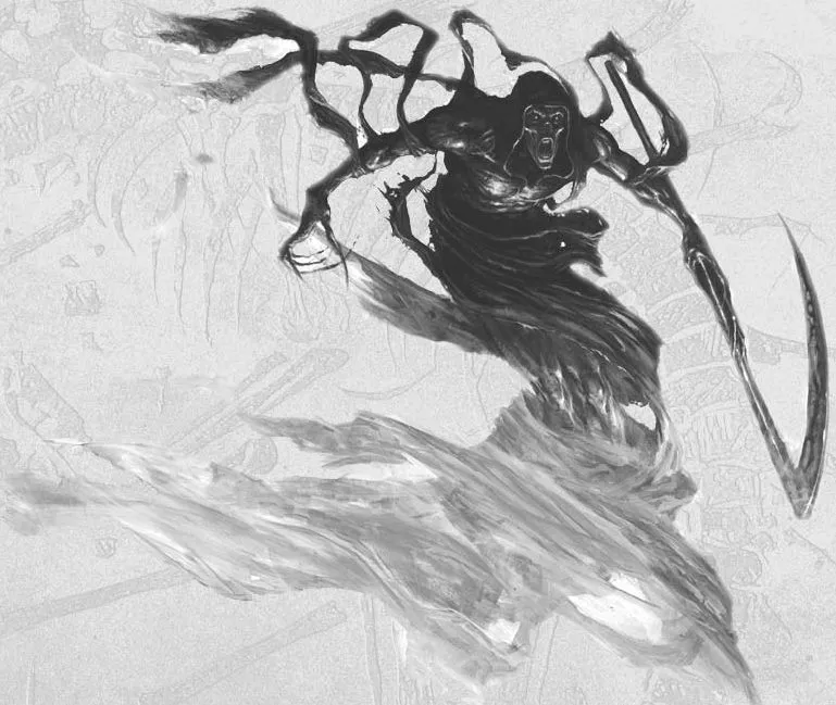 Роль разведки и незаметных убийц у некронов играют духи – создания, словно бы составленные из одних клинков и острых рёбер. Тонкие, быстрые и смертельно опасные, они умеют на время переходить в эфирное состояние, становясь практически невидимыми, неслышимыми и неуязвимыми. Они бесшумно скользят в тенях, проявляясь в материальном мире лишь для того, чтобы нанизать кого-то на свои когти.
