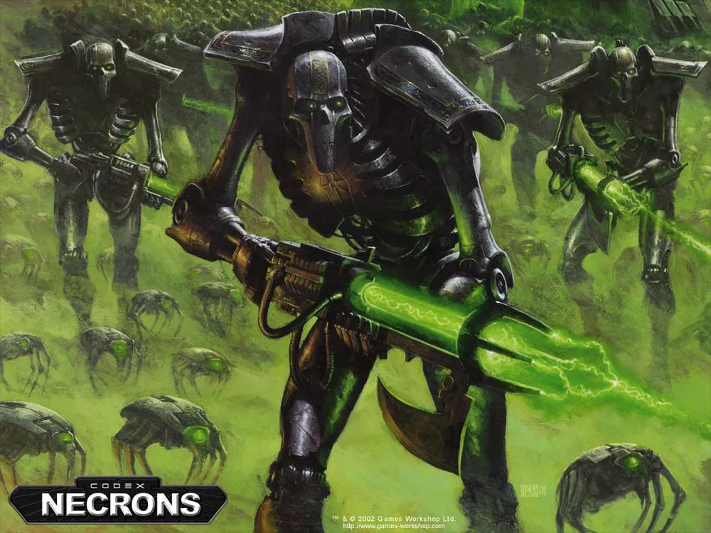 Основу некронской армии составляют воины некронов – гуманоидные фигуры из металла, напоминающие внешним видом человеческие скелеты. Их металлическая «плоть» способна восстанавливать даже очень серьёзные повреждения, а если ущерб оказываются чересчур велик, то воин переносится в стазис-гробницу, где его вновь ставят на ноги – даже из состояния груды запчастей. Вооружены некроны так называемыми «гауссовыми шкуродёрами» - орудиями, стреляющими энергетическими лучами, которые буквально аннигилируют плоть жертвы.
